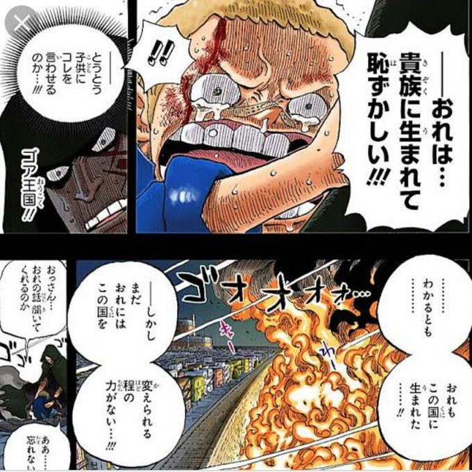 サボ(泣いてる子)は貴族の出なのだが、その貴族達は権力をかさに着てやりたい放題。そいつらと同じ血が流れている事を心から恥じたサボ君の魂の叫び。