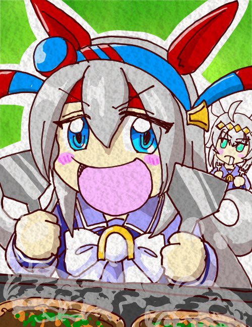 フォロワー100人突破口記念リクエストウマ娘!ラストはタマちゃん。 オグリ、腹減ったんか。よっしゃ。ウチのお好み焼きをたらふく食べさせたる! ※なんとなく大阪弁なのはご了承ください。 #イラスト #ウマ娘 #タマモクロス