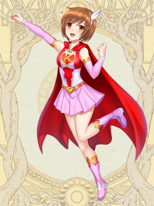 第六猟兵、小鳥の正義のヒーローのコスプレをしているイラストが完成した~♪。dam/dam先生にかわいく描いていただいたよ~♪。わーいヽ(=´▽`=)ノ。