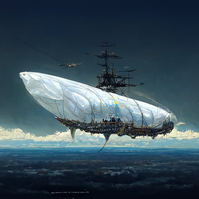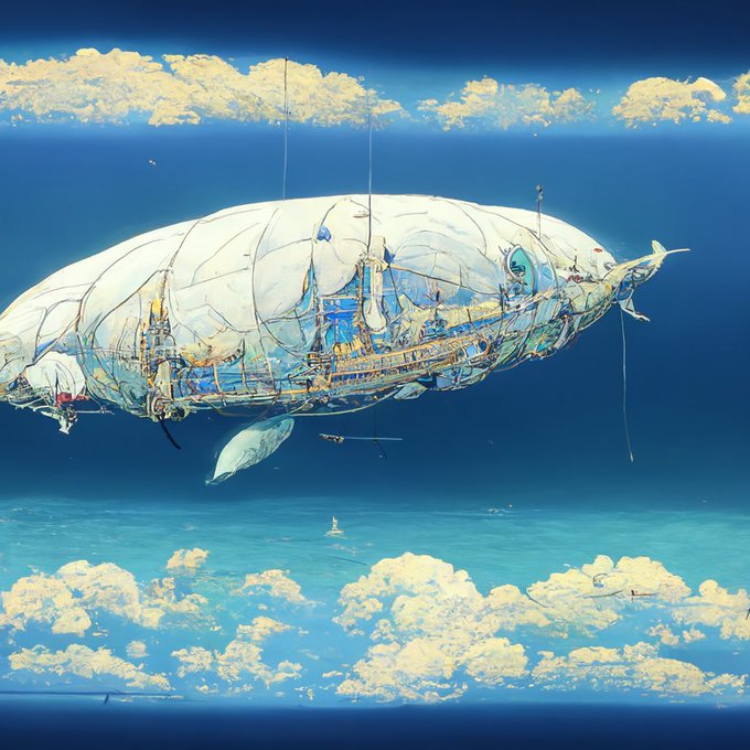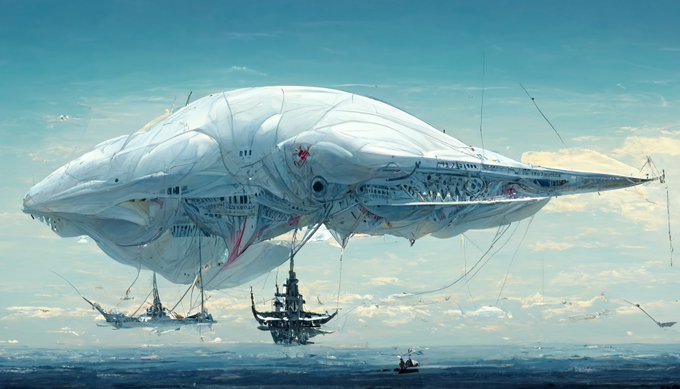 Orcinus orca,White baloon,White airship made of stained glass,mechanical battleship::500, white sailing ship,飛空艇 in final fantasy::500, predator flagship::500, skyship weatherlight::500,skyship,airship in ff12::500,blue sky,high detailed,4k --ar 16:9
