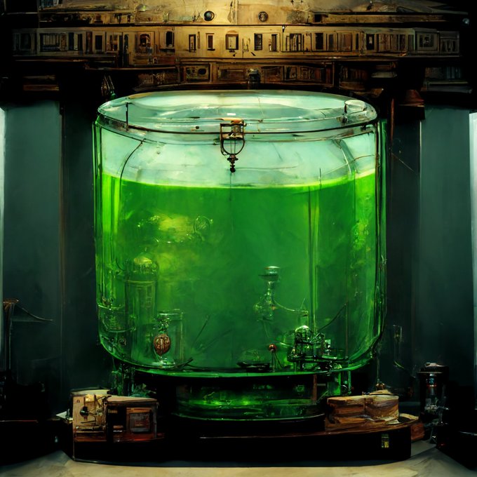 (”☆ ☆)ミッドジャーニー先生「なんかファンタジーな培養槽な背景行けるかな」とおもって適当にそれっぽい単語入れてお遊び・・・