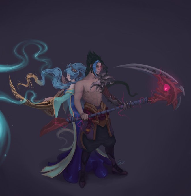 This one is a few details away~ Gotta finish this tomorrow! #LeagueOfLegends #Sona #Kayn