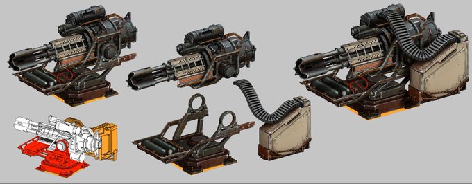 A frontal shotgun with limited angles. When it overheats, the damage resistance increases temporarily. Why? Because its shutters close! Which is shown on this concept.