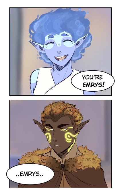 So my characters name in our dnd group is Emrys and one of our party members has a very hard time saying his name so i made a quick comic :)
