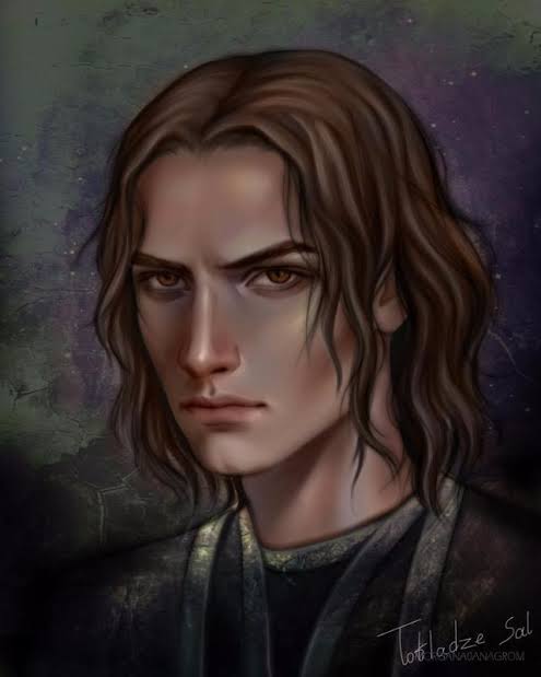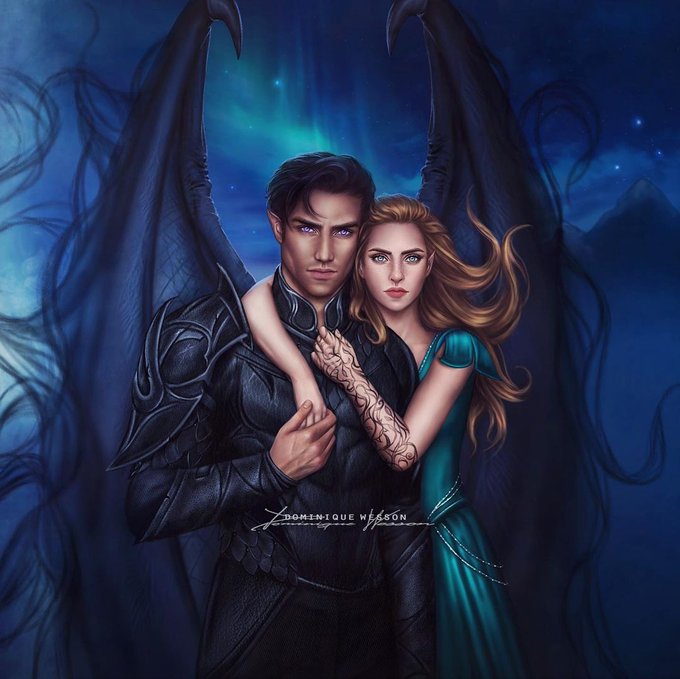 "Rhysand encostou-se na entrada da sala de estar, com os braços cruzados, as asas longe de ser vistas, vestido com sua jaqueta preta imaculada e calças.