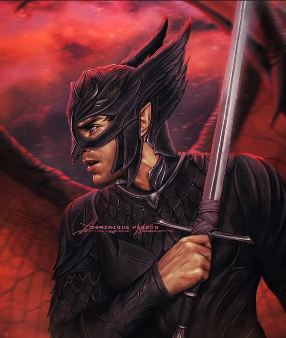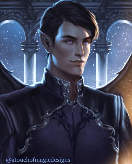 "Rhysand encostou-se na entrada da sala de estar, com os braços cruzados, as asas longe de ser vistas, vestido com sua jaqueta preta imaculada e calças.