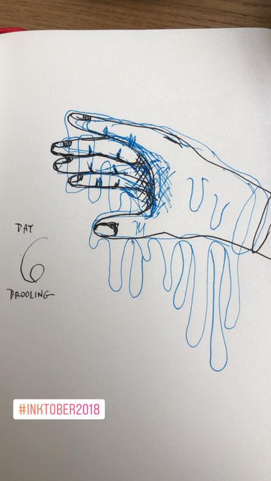 Day 6 Drooling The hand is covered in drool. Ewwww. https://t.co/WqEZApgvpS #inktober #inktober2018