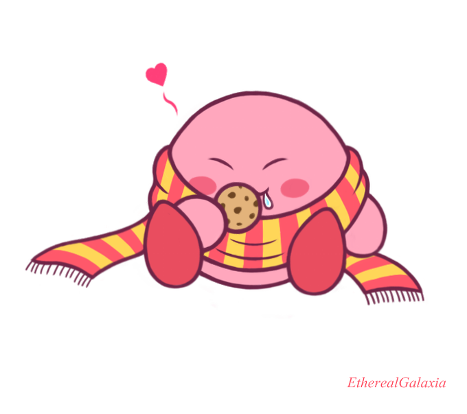 Sticker number 2! It's scarf Kirby! He's all warm and wrapped up 😊I do wonder how many cookies he's been eating though.. 🤔