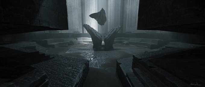 Temple Ruins Throne & Crown of Sabbac, concept art for #BlackAdam movie by Alex Nice and Luca Nemolato.