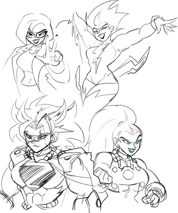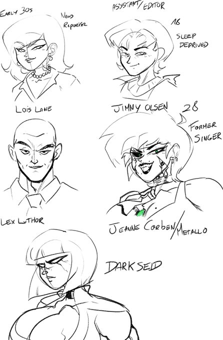 More concepts for Cora Kent's Superman !!! showing more of her goofiness and how much of a weeb she is. Also now i'm designing other characters in her story including some classic antagonists, i'll add color to their designs later.