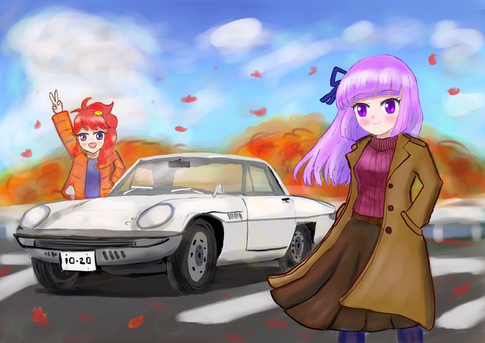 秋のドライブな珠璃スミ🍁 大遅刻だけどスミレちゃん生誕絵ってことで...... おめでとう〜〜🎊🎊🎊 #氷上スミレ生誕祭2021 #氷上スミレ生誕