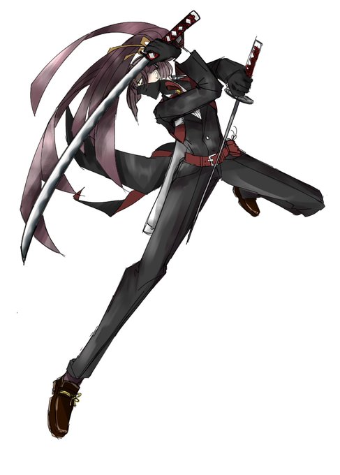 キリッとした眉にキリッとした目、口まで隠れるインナー、束になりがちなざっくり切ったポニテ等忍者要素をてんこ盛りしました(?)