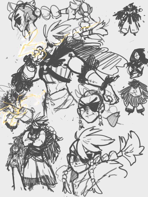 Here’s some messy sketches of the other characters I’m working up for Fera’s story! Her mom and a reasonably nervous local hunter