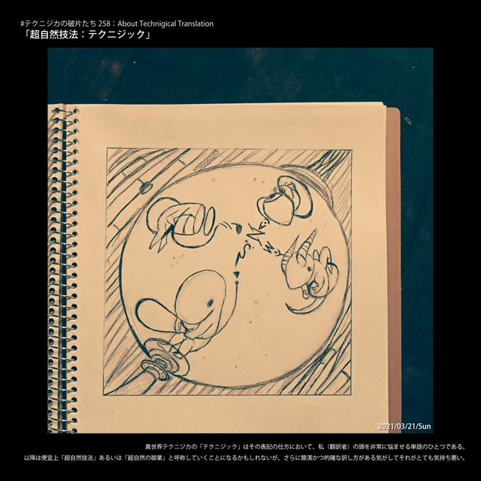 #テクニジカ #Technigica #everyday #毎日投稿 #テクニジカの破片たち #FragmentsofTechnigica #FoT258 「#超自然技法テクニジック」 "#SupernaturalWorksTechnisics" #技法翻訳について #AboutTechnigicalTranslation #イラスト