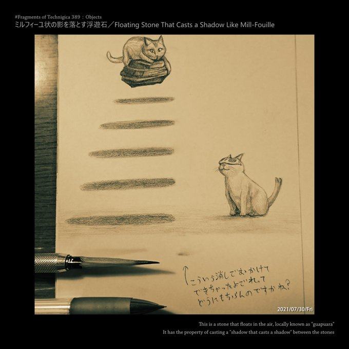 #テクニジカ #Technigica #everyday #毎日投稿 #テクニジカの破片たち #FragmentsofTechnigica #FoT389 #ミルフィーユ状の影を落とす浮遊石 #FloatingStoneThatCastsaShadowLikeMillFouille #オブジェクト #Objects #イラスト