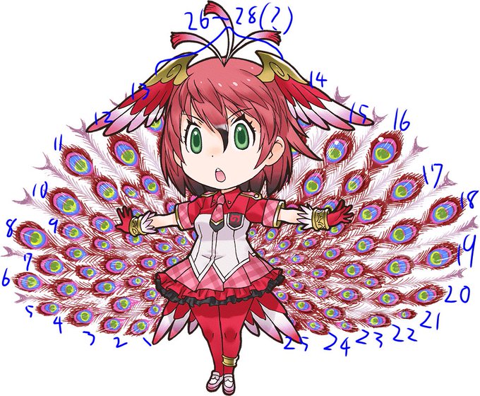 スザクの羽は25〜28本 瞳は85個以上(わからない) 薄い羽は15本ぐらい