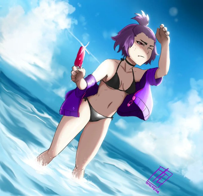 Finally finished this piece (Nudity warning). Ages ago I said I want to draw her in a proper paintings, so here it is!!. Its also an unplanned birthday piece for @MalberryBush , Happy birthday again!!, I hope its okay to drag her for some summer dipping!!