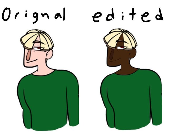 @blkbelles_ @Sn_359 @rinn_eko @dir___4 @_Hero_Hei_ Similar but opposite to whitewashing. To take someone else's character and bending the skin color or race. Here's an example with my brother's oc, Ceodor Pizzaro.