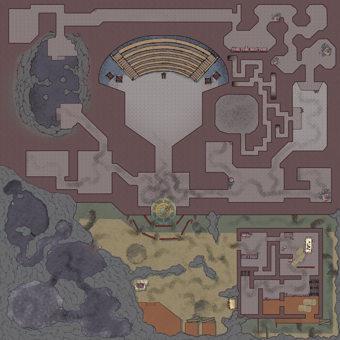 This one (alongside Daedalium currently being ran) make a fair amount of use of assets from @2minutetabletop to save me a lot of time and hand-strain drawing!