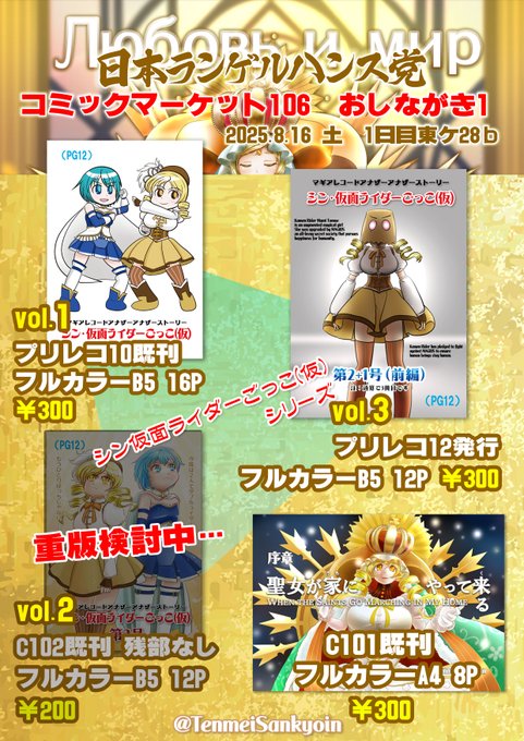 C106土曜日 東地区 “ク”ブロック-28b(東6ホール)「日本ランゲルハンス党」サークル情報です。 おしながき最終版を投稿します。 すみませんが今回色紙ありません。以上です。よろしくお願いいたします。
