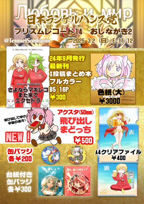 E-11/12「日本ランゲルハンス党」プリレ14おしながき第一弾です。このあと当日朝までに色紙情報を追加予定