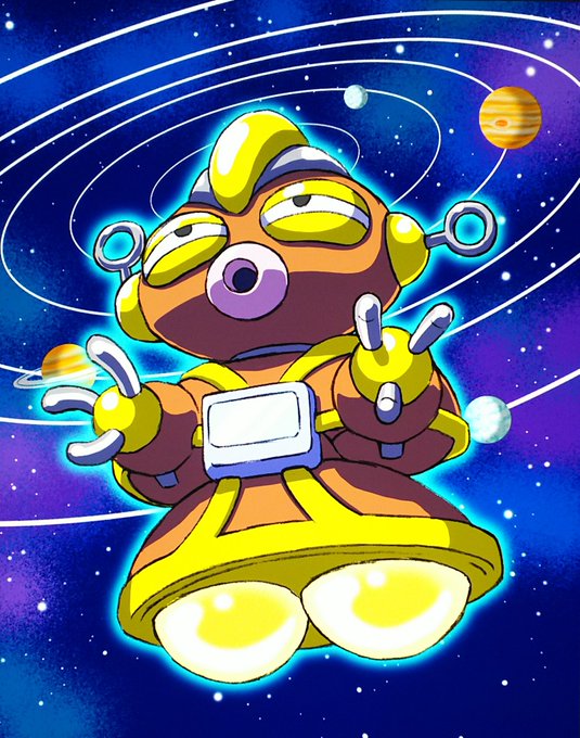 @tsunokuribo おはようございます。 涼しい朝ですね。 今さらですが夏イラストです😅 きっと南の島のリゾートホテル辺りなのでしょう🌴 #ロボットポンコッツ #ジェット