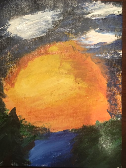 For me it was a few years ago, when a good friend of mine @TechnoRaine and I were watching together and we painted along with the Bob Ross hour. It was a super fun time for a super great night. I still have the Paining on my wall and it makes me smile every time i see it.