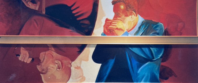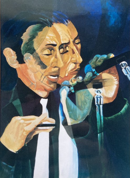 Found some real paper photos of my paintings of some musicians I know. First one is a square diamond shape. The second is a double panel and works each way up. Turn it over. These are from the days I liked mixing images and overlapping things. All still stored in my loft.