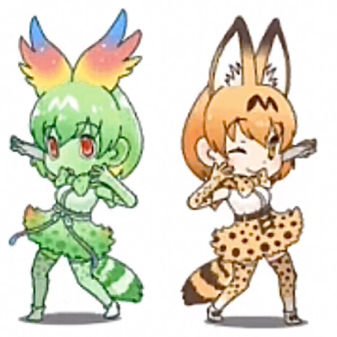 @G4Ryu1308 うーむ…体と髪型は同じですけど羽のような耳とかサーバルとは違う目とか腰に巻いた紐描かないとなぁ…よく紐描き忘れてしまいます。