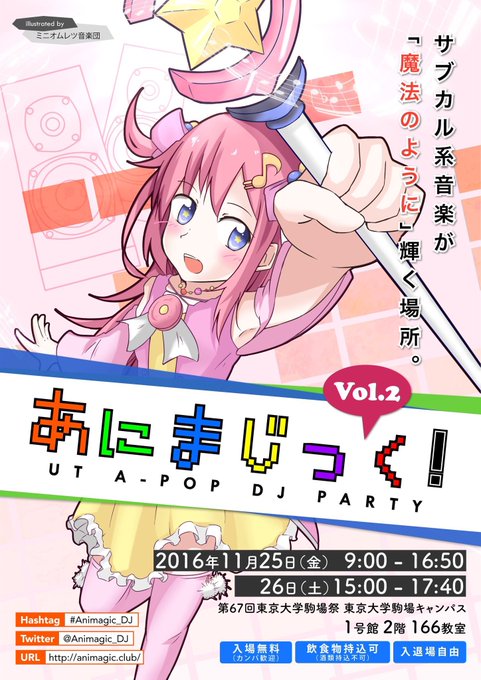 【出演情報】 【11/25・26(金・土)】 東大駒場祭A-POP系DJイベント『あにまじっく!』 入場無料・入退場自由 https://t.co/4rMWT4GBBj #Animagic_DJ 自分は26日に回しますよ〜、実は県外初遠征。ご賞味あれ!