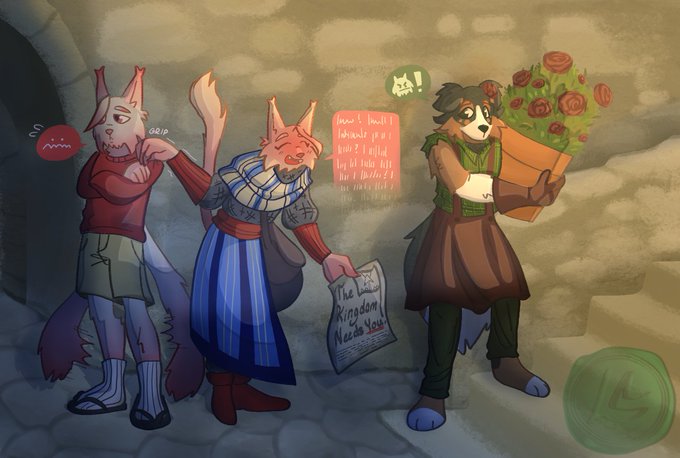 As a prize for winning ArtFight this year, I drew, as per @azereii 's instruction, "them and their blorbos"! I'll take that crown from your head in 2023, just you wait...