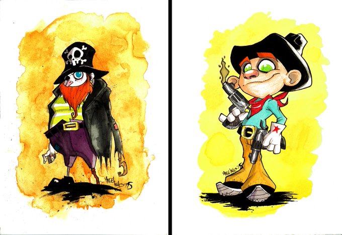 PIRATE & COWBOY WATERCOLOR starting the year with original characters #pirate #cowboy #watercolor #cartoon #original