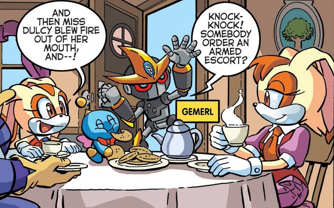 I do wish for couple characters to return in games. It'd be nice for vanilla and cream and gemerl to return, The unfortunate part is Beauregard can't appear since he's an archie character. And yet the image I'm using is from IDW.