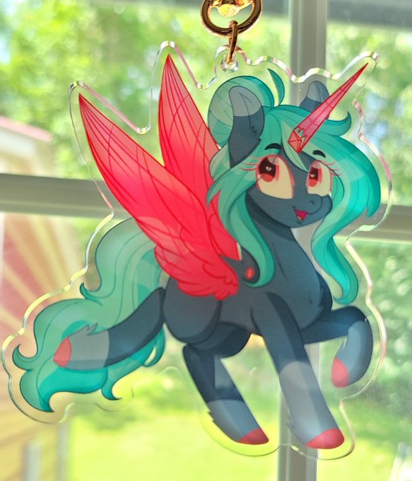 Pssst.... These giant 5-inch Princess Luna charms are down to only TWO! They have translucent acrylic and come with a sticker and they won't be restocked! They're bigger than my hand and look amazing in the sunlight! Also, free sticker 👀