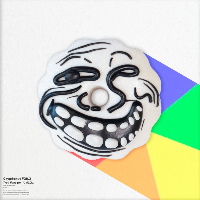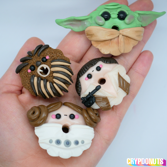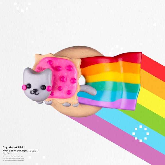 All CrypDonuts are real model donuts made from polymer clay, measuring 3.5cm across and weighing around 20 grams. Collect all copies of a single NFT and receive the model donut!