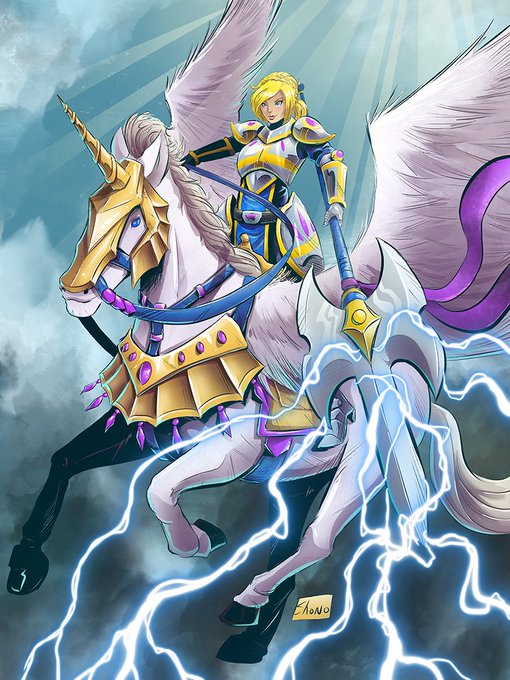 Today's commission is another original character. This time a #dungeonsanddragons character, but she could easily be mistaken for being from #FireEmblemThreeHouses with that sweet spear and pegasus.