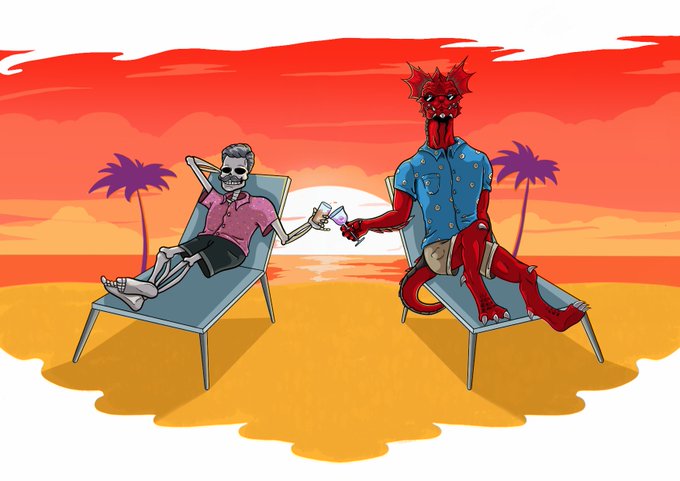 A commission I did for a friend, who wanted a gift for her friend: their two game characters, and what they were up to after their game ended 😂✍️