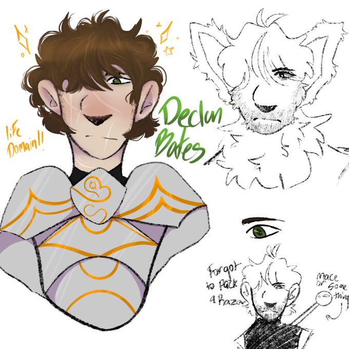 @/emrystardis asked me to draw a dnd character of his and I really enjoyed it! Declan is super fun and I love the wolf guy!!