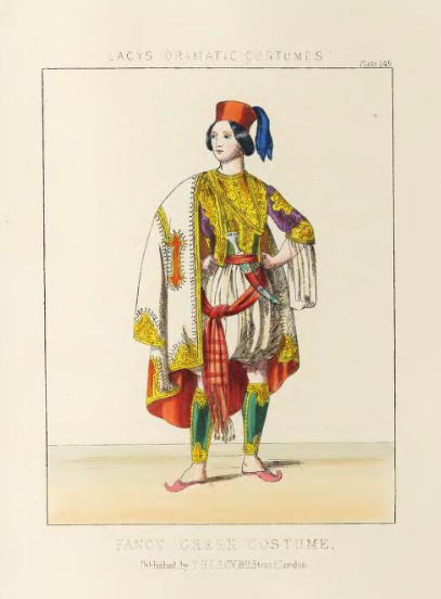 19th Century Theatrical Costumes by Lacy (1868) - Greek costume for a female performer playing a "breeches role."