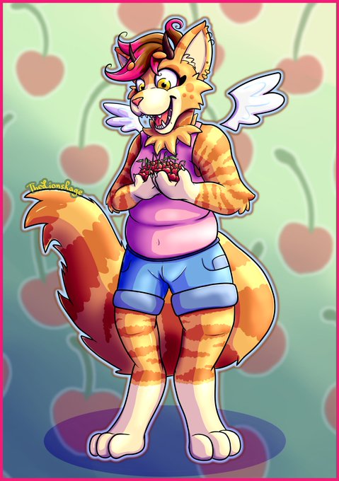 Art Fight attack on @taelvea! Thought she deserved some cherries! I love the big fluffy tail! #artfight #artfight2021 #teamcyberpunk #teamCyber #art #furryart #ArtistOnTwitter