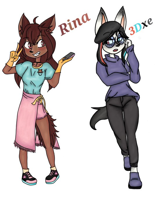 Fully colored picture of a sketch @3dxe1 did of my character Rina and his 3Dxe