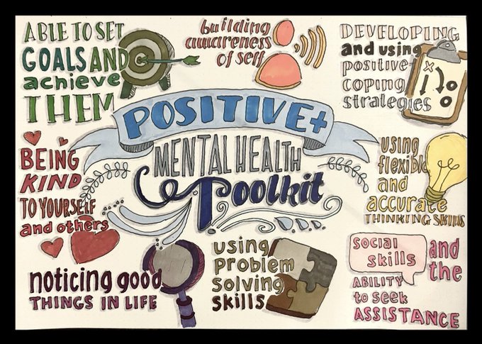 #sketchnote of the day - I wanted to draw attention to how easy some of these strategies are to teach to Ss - What are we doing in our classrooms to ensure Ss are learning how to cope with mental health issues? @schan_tdsb @LC2_TDSB #MentalHealthMatters #Wellbeing #mentalillness