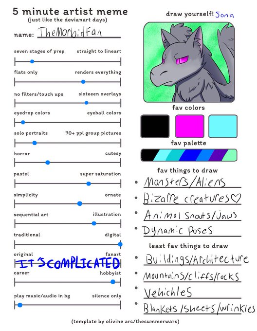 I'm a hobbyist digital artist who loves making unique monster characters. I love fictional characters to death and I get pretty obsessive over some of them(both mine and other people's), but it's all in good fun.