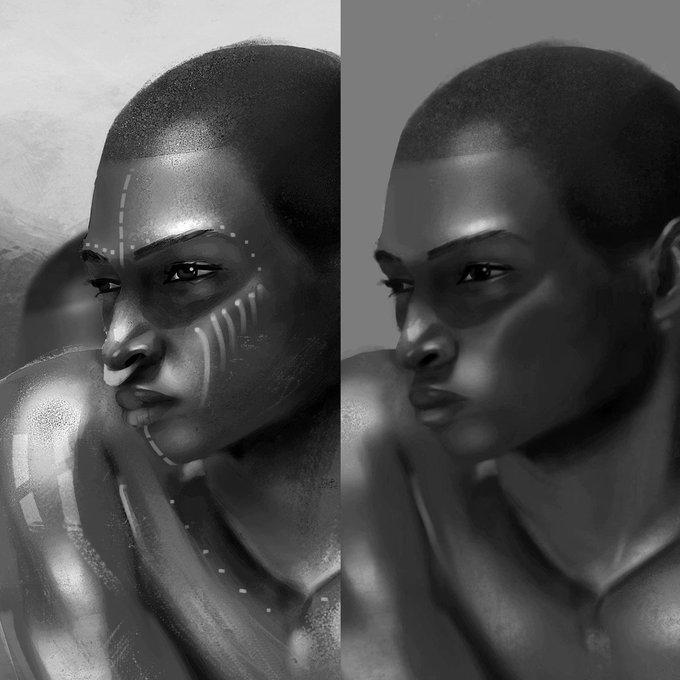 Process breakdown for my last painting study on dark skin, enjoy!