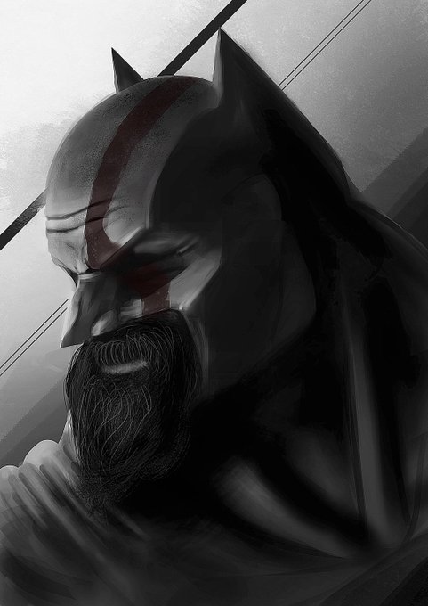 @rafagrassetti @corybarlog @SonySantaMonica thank you for giving the world such an amazing experience, you guys have inspired the next generation of artists and gave us all something to look upto! Much love and respect!! #godofwar #kratos #batman #fanart #art #ps4 #artist #mashup