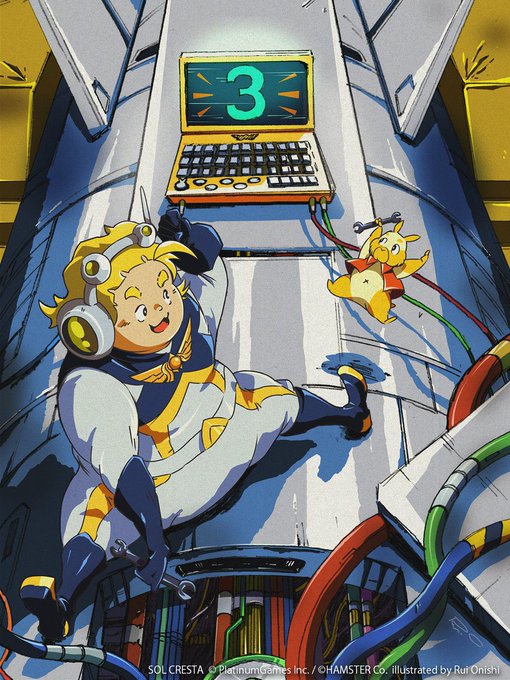 2 DAYS! Platinum Games have been sharing art to countdown the Sol Cresta—the Arcade Space Shooter sequel to Moon Cresta and Terra Cresta. ‘2’ is drawn by Character Designer, Manami Saito. 3 is drawn by Lead UI Designer, Rui Onishi. Sol Cresta hits Nintendo Switch on February 22!