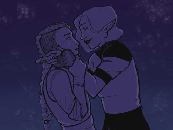 Hello!! I’m Sal (they / she), an art student and enthusiastic dnd player. I like drawing my partner and other lesbians of many shapes and forms :-). Happy #LesbianDayOfVisibility !!!