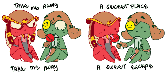 quick warm up doodle of the snake phrog siblings--