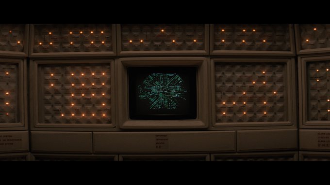 Alien (1979): The Leviathan's bridge & computer room, early art by Elliot Scott.