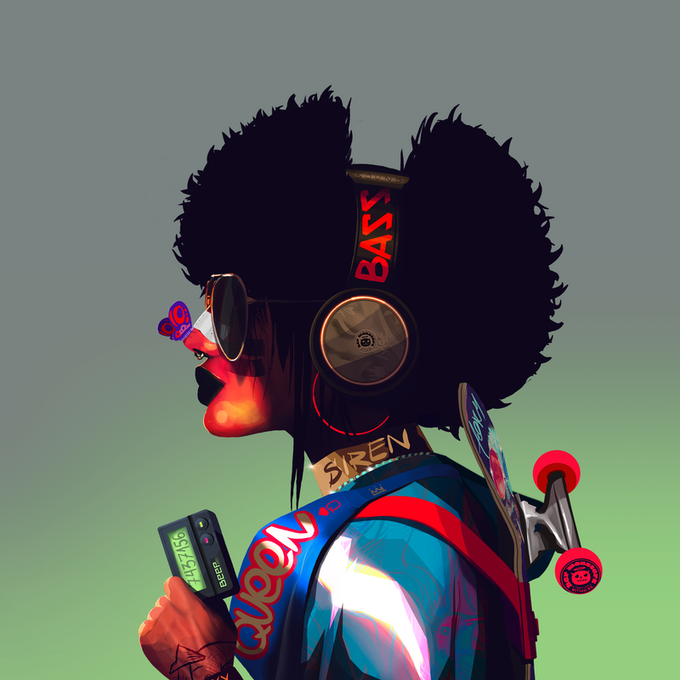One of my favorite aspects of the @her_monsters #NFT collection is how traits can be affected by other traits. Seen here as the headphones affect the afro hair trait. Many of these little touches are throughout the collection. Amazing work by @MicuHMG! 🤯 #HMG #HerMonsters #CNFT